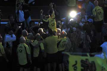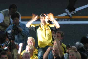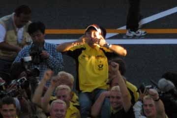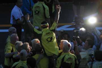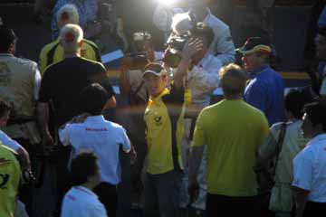 | 大歓声に暫らく応えた後ピットに撤収。 | |