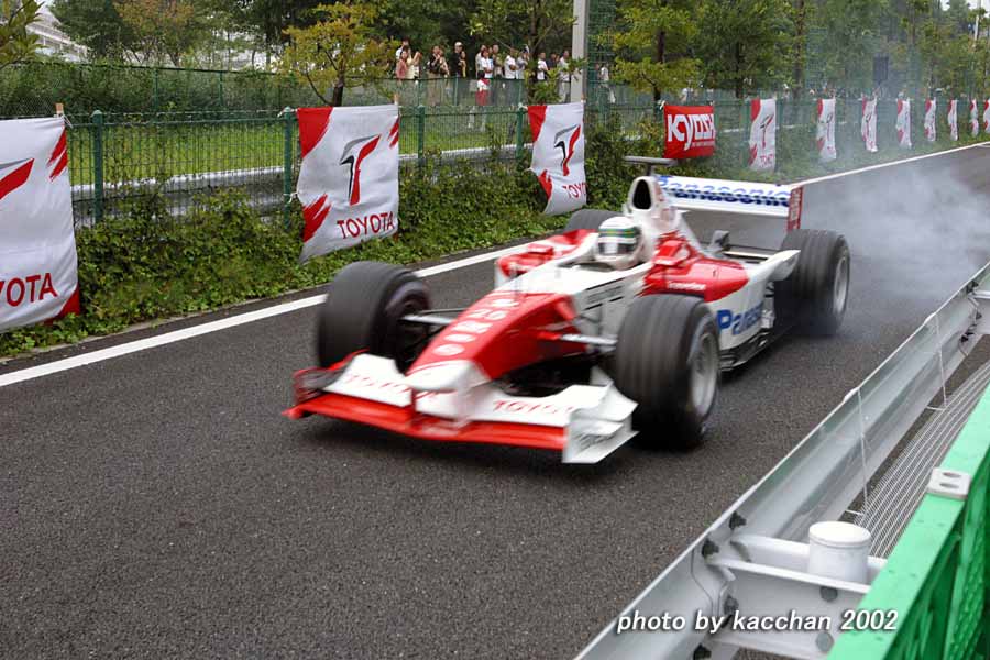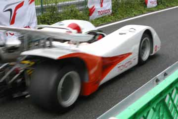 F1マシンが見える場所は離れすぎてよく見えない、今度は真上にあるショールームに移動する。 テントに遮られてマシン本体は見えないが、リアカウルとTOYOTA7をゆっくり観察。 帰り支度をしていると先程の知人と再び遭遇、迫力ある走行について歓談する。 入場整理券が無い為間近での見学は出来なかったが、2階のベランダから見ることが出来たそうだ。 臨場感を除けば案外そこが特等席だったかも?、こちらは人垣の合間から一瞬見えただけだから・・・。 でも迫力あるエキゾースト・ノートは、やはり近くでないと比べ物にならないかな?。 帰り際に、鈴鹿での再会を約束する、週末のレースが楽しみだ。 |