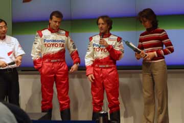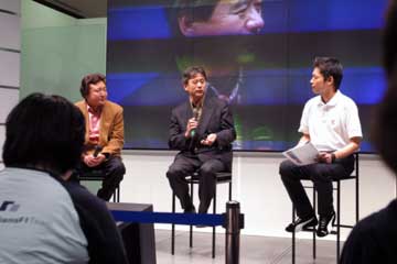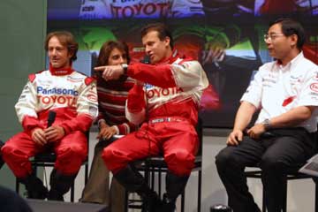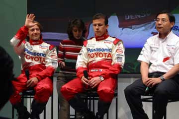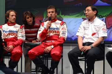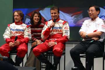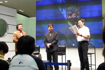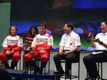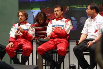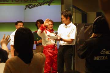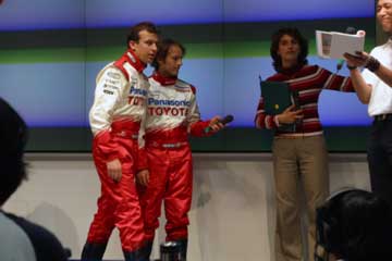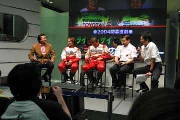 | 主役ののドライバー2人、そして新居氏に代わってTMGの高橋敬三氏がチーム代表として登場。 | |