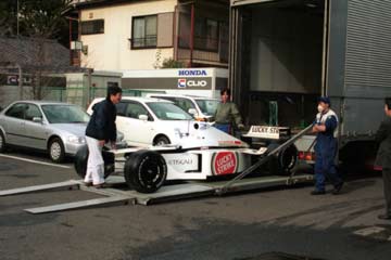 | トラックから下ろされる、マシン。 | 中にはCARTマシン、これは別の店に運ばれるらしい。 |