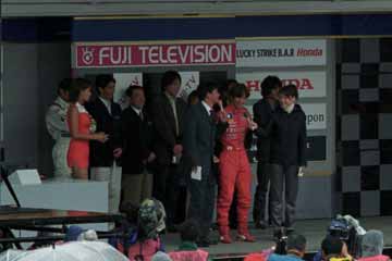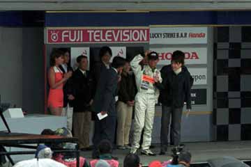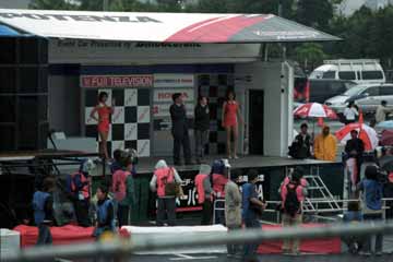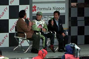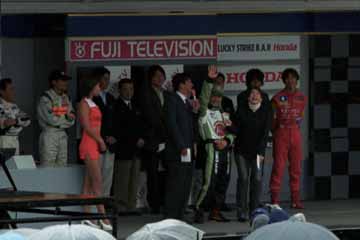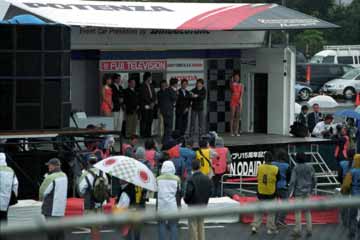 出場ドライバーの紹介が終わった後は佐藤琢磨のトーク・ショーが行われる。 フォーミュラーニッポン走行の準備が終わるまでの間行われた。 ジョーダンでの2002年F1参戦は未だ発表されない為言葉を濁したが、来年に期待して欲しいと語る。 |