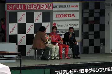フォーミュラ・ニッポンの走行開始。 先ずは両選手のインタビューから、お互いに真剣なバトルを行うと語っていたが、実際は?。 |
