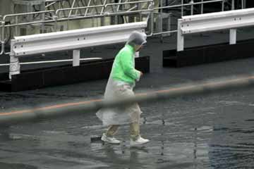 | 走行終了後はトークショー。 | その間にコースに溜まった水を排水するスタッフ。 |