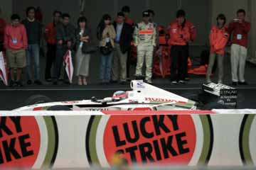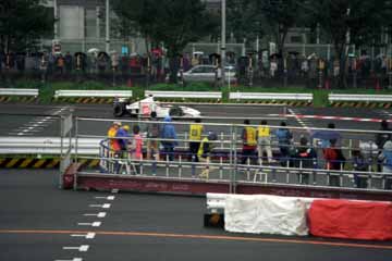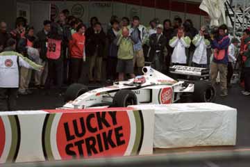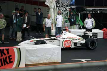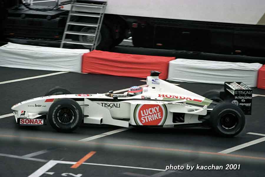 いよいよBARの走行、都心でF1が本格的に実走する。 又、日本での佐藤琢磨F1走行初披露だ、BARでは最初で最後となる?。 |