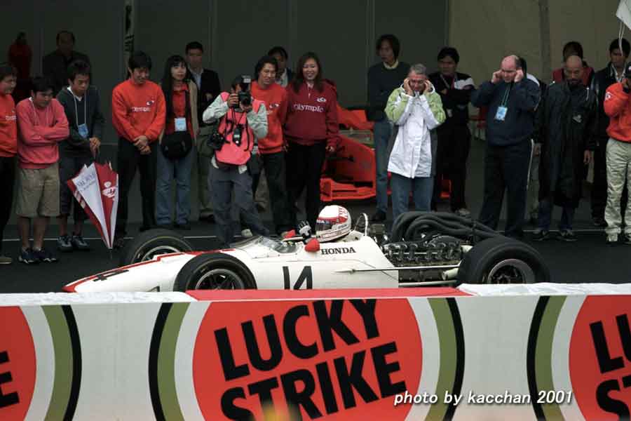 現代F1とは異なる野太いHONDAサウンドを響かせての走行。