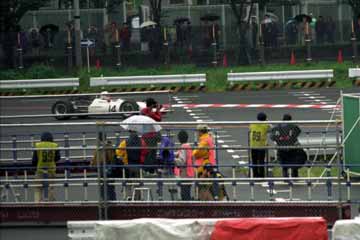 次は中嶋悟のドライブするRA300の登場、雨の中島の本領発揮か。