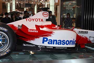 | TOYOTAを展示していますが、後ろに流れるビデオにはウイリアムズのマシンが・・・。 | |