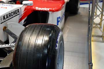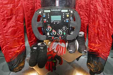 | マシンの両脇にはドライバーの装備とエンジンを展示している。 | |