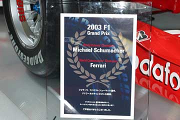 結局F1関連はワールド・チャンピョン獲得を報告するパネルのみ、寂しい〜〜。 |