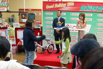 | 指定席抽選の発表、無事指定席をゲット!。 | カストロール・グッツをビンゴ大会でプレゼント。 |
