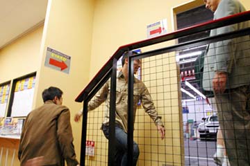 | 会場に到着、急いで指定席の抽選に申し込む。 | ここが会場内、狭い。 |