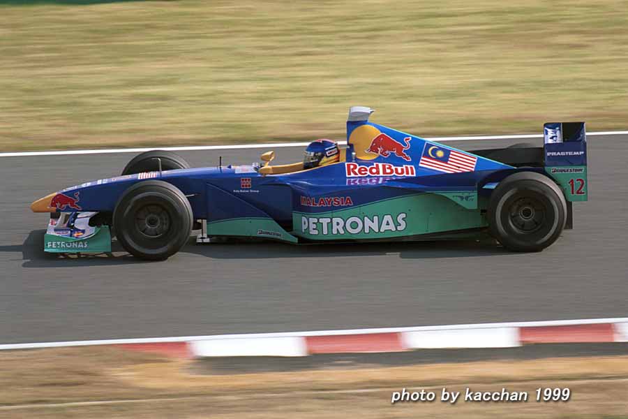 | ブルー・グリーンのペトロナス・カラーからザウバーと分るはず。 1995年のペトロナスによるスポンサー開始からNo12は1999年のみ。 1999年の観戦記にも、この年ペドロ・デニスからサインを貰った事が書いて在ります。 |