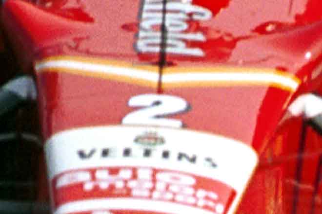 | 赤いけどフェラーリではありません、ウイリアムズです。 ウインフィールドがスポンサーの時代、No2ですからジャック・ビルヌーブがチャンピョンを取った翌年、1998年ですね。 |