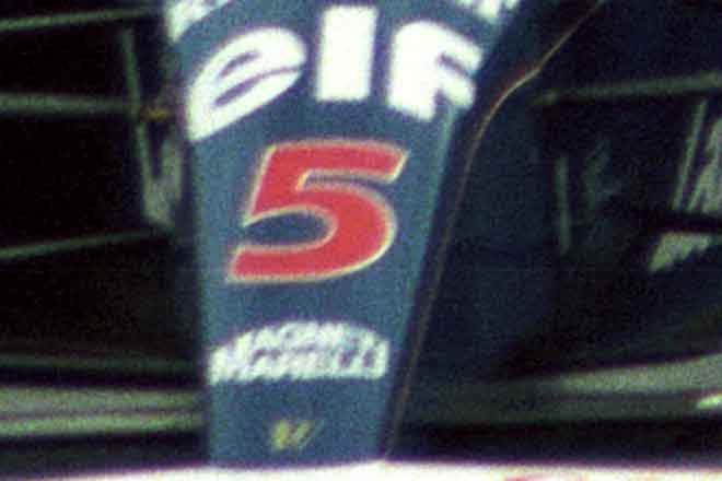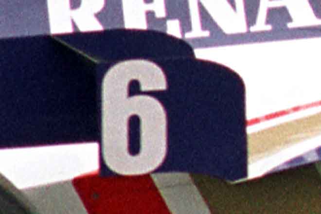 | 最後はなんとNo0。 1993年と1994年はチャンピョンのF1引退でNo1は無し、セカンド・ドライバーのデーモン・ヒルがNo0を付けました。 問題のマシンはそこまで3勝していた1993年です。 |
