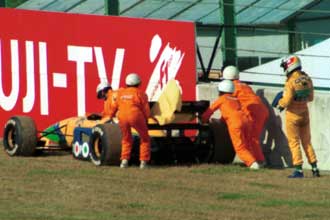 1998年R16 鈴鹿 リタイア F3時代からのライバル、ミカ・ハッキネンとの熾烈なチャンピョン争い。 P.Pを獲得するも、2度目の再スタート時にエンジンストール、最後尾から3度目の再スタートとなる。 見事な追い上げも虚しく、32週目にタイヤ・バーストでリタイア。 またもチャンピョンを逃す。 総合順位 2位 |