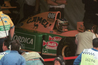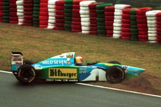 1991年R15 鈴鹿 リタイア この年のベルギーGPで、ジョーダンからデビュー、いきなり予選7位に付け、周囲を驚かせる。 さらに、次のイタリアGPではベネトンに電撃移籍、注目を浴びる。 鈴鹿では、130Rでクラッシュしながらも予選9位。 決勝は、6位走行中にエンジン・トラブルで、惜しくもリタイア。 総合順位 13位 |