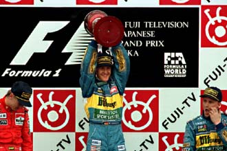 1997年R16 鈴鹿 優勝 P.Pのジャック・ビルヌーブを、エディー・アーバインとの見事な連携で下し優勝。 最終戦でチャンピョンを争うが接触、その後ポイント剥奪されてしまう。 総合順位 なし |