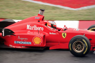 1996年R16 鈴鹿 2位 カーNo1を土産に、フェラーリに移籍。 低迷のフェラーリの再建に努力するが、チャンピョン争いには加われない。 このレースも2位に入るが、デーモン・ヒルを脅かす存在ではなかった。 総合順位 3位 |