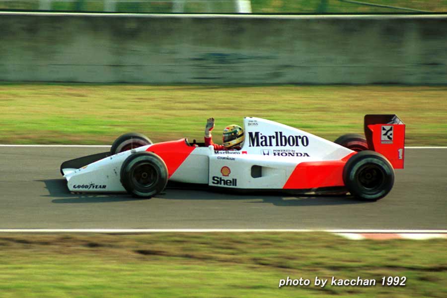3度目のワールド・チャンピョン決定後、チーム・メイトのゲルハルト・ベルガーに優勝を譲る。 総合順位 1位 1992年 鈴鹿 リタイア ウイリアムズ&マンセルの圧倒的強さ、HONDAのF1休止発表、セナ苦闘のレースが続く。 |