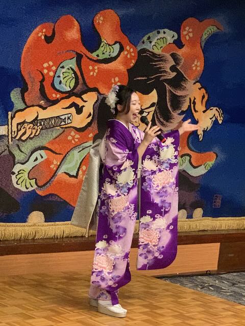 雲海の見えるリゾートホテルで人気の休暇村で交流会が行われた。ゲストは秋田の歌姫「吉川ちあき」民謡歌手から演歌に転向、もちろん民謡も唄います。 「天童よしみ」のそっくりさんと呼ばれると本人も大喜び! 60分の予定が大幅にオーバーお客様は大喜びの交流会でした。 |