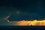 海峡の朝>>>まもなく厚い雲に覆われる朝陽と、根室を出港した漁船群。